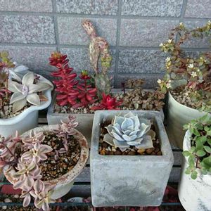 2ヶ月でかなり冬らしい趣になりました。 ボルゲンシーは消えていた水玉模様が戻って普通の方にまた花がつきました。錦はなかなか根が張らず、増えかたもゆっくり。 青いエケベリアは札落ちでしたが、リラシナだと思って育てています😄