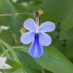 縁にうっすらピンクが入っていて可愛らしいアサガオです😊