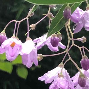 雨☔️凄いです。 警報が出ている中で咲いているお花がいました。 スズムシバナです。