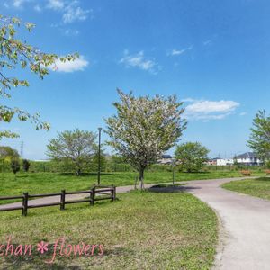 「公園にて」 ぼたん桜🌸とメタセコイヤ🌲