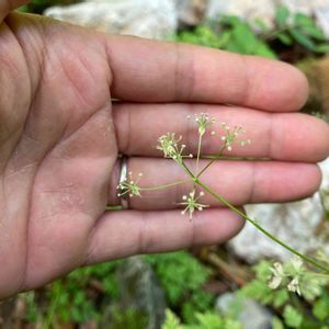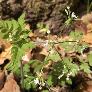 4月17日撮影 加治丘陵 自然かんさつ会にて。 また林の中へ入りました。 セントウソウかな?と思いましたが、 ピーナッツ🥜のような子房が目立っていません。 葉の形も少し違っているような? ヤブニンジンだそうです。 セントウソウよりも花は遅れて咲きます。 子房は2つありますが、セントウソウのようにはっきり目立ちません。線香花火みたい☺️ 調べてみました。 白い花弁は内側にくるんと丸まっており、まさに今から花開く蕾のよう(だけれどもこれで全力で咲いている状態)。伸びた雄蕊が花火のようでかわいらしい。細かい構造は花が小さすぎて見えない。 (mirusiru.jp より) 葉もちょっと違います。 セントウソウは1~3回3出羽状複葉で、紫色を帯びた長い柄があり、ほとんどが根生しています。ちょっと厚めでツヤっとしています。 ヤブニンジンは、長さ7~30センチの2回3出羽状複葉です。パッと見た感じ二等辺三角形に切れ込みが入っている感じ。柔らかい葉です。 わたしはまだパッと見て分からないと思うのですが、花の真ん中にピーナッツ🥜形の子房があればセントウソウ!と思うようにしています🥰 ヤブニンジン(藪人参) セリ科ヤブニンジン属