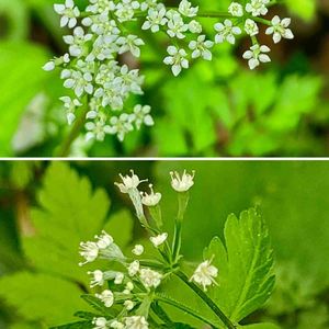セントウソウ (仙洞草) ヤブニンジン (藪人参) 🌿セリ科 ⬆️セントウソウ ✽無色で軟弱な多年草で高さ10〜30cm ✽葉は根性状につき、紫色を帯びた長い柄があり、基部は鞘状 ✽花は径2㎜ほど ⬇️ヤブニンジン ✽高さ30〜80cmの多年草 ✽花期まで全体に白軟毛があるが、やがて落ちる ✽葉は柔らかく、裏は白っぽい ✽花はまばらにつける セリ科の2種類です🍀 どちらも小さな花ですが、ヤブニンジンは特にちっちゃい😄