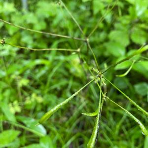 ヤブニンジンの実🥕 なんじゃこりゃ🤪 緑の線香花火かぁ❓ ヤブニンジンの花後って、初めて見ました😅 中央の小花序の外側に両性花が取り囲むようにあって、それがこの細長い果実というわけで… セリ科ヤブニンジン属