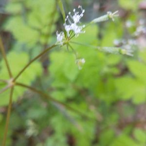 とっても小さくてパッと見では見えない透明感があり、下を見ながら歩いていないと見過ごしてしまいます😍❣️🎶 可愛い🤗💕 線香花火の様です🎇 🍀 ユーザーさんにヤブニンジンと 名前を教えて頂きました😄❣️ ありがとうございました🤲😊🥕♪♪♪