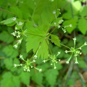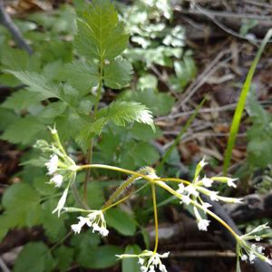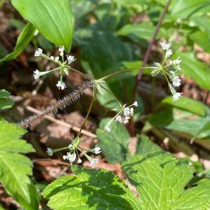 ヤブニンジン(薮人参) *セリ科ヤブニンジン属 花期は4〜5月 北海道〜九州の林縁や日陰に生える 名前は ヤブに生え、葉がニンジンに似ている事から付いた! 線香花火のようですね! 宮城県名取市 五所山登山道