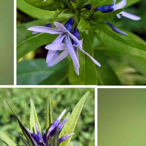 水生植物園の池の周り一面に淡い青紫色のチョウジソウの花が沢山〜咲いてとても素敵です✨✨ キョウチクトウ科