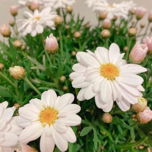ホワイトモカ マーガレット🤍 ダブル咲きが美しいPWのマーガレット だんだんと咲いてきました🌸 蕾たくさん✨満開が楽しみです。