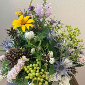 お出かけ先🌿✨ 私の好きなエリンジウムが🌿✨ 入ってるアレンジ😍