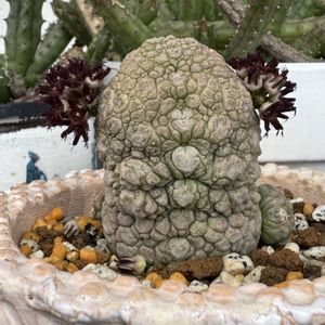 咲いたよー🌸 ①メロカクタス ②スタペリフォルミス ③橙飾玉 これは咲いたのか?咲き終わったのかな? もう何日もこのまま💦💦 この名前で検索しても出てこないんです💦 おじ様から購入するとたまにこんなことがあります😅
