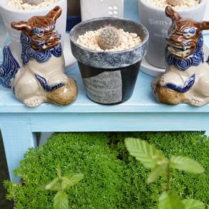 🏷2021シーサーの日 我が家で唯一のシーサーです。 5個埋めたどんぐり(クヌギ)今のところ4個🌱芽が出ましたよ。
