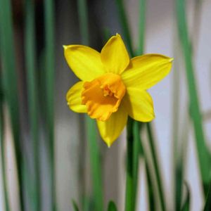 3月2日は GSミニモニの日。 投稿テーマは 『ビタミンカラー』💛 ベランダのミニ水仙 やっとひとつ咲きました。 (3/1撮影) 後ろの葉っぱは違う品種の水仙です。