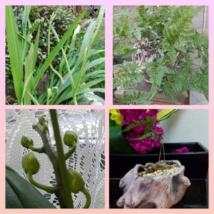 おはようございます☀ 🏷毎月4日はシダの日 🏷金曜日の蕾たちに参加します。 右上下は、トキワシノブです。下のるるさんちからきたシノブちゃんの新居決まりました。上のはかれこれ10年以上になりますが、このままで良いのでしょうか?株分けとか植え替えとかした方が良いですか?アドバイス頂けると嬉しいです。 左上は、フリージア 左下はミディ胡蝶蘭です。
