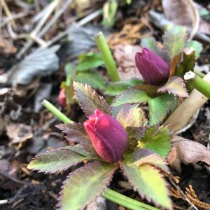 こんにちは😊 今朝は霜が降りて、昨日 植えた小さい苗達は初日から受難だったかも😌💦 日中は暖かくなりちょっとホッ です☀️ クリスマスローズの蕾、可愛い子見つけちゃいました️💕 黒っぽいから見逃してたなぁ(*´ω`*)