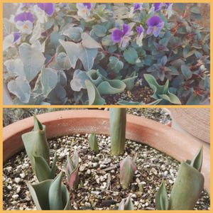 寄せ植えの鉢でも、球根だけ植え込んだ鉢にも、チューリップ🌷がすくすく育ってます🤗🍀