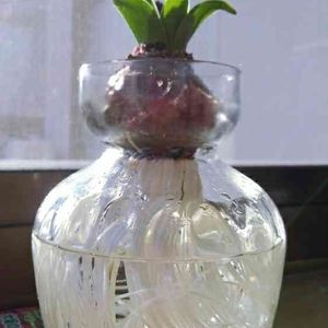 ヒヤシンスの水栽培。 素晴らしき、根っ子。 蕾に色がついてきました。