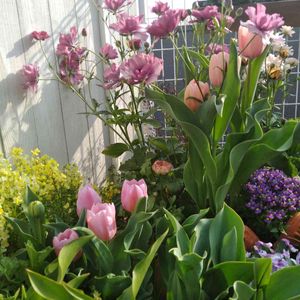 チューリップ咲いてきました🌷 この花壇には昨年12月に色々なチューリップの球根を90球植え込みました🤭 開花時期も少し違うのでこれから1ヶ月ほど楽しめそうです✨