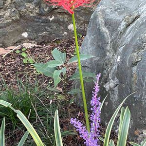 gs始めてから初めて気がついた 自宅庭🏠の彼岸花とヤブランの ツーショット🪴 和の趣があって心が落ち着きます☺️