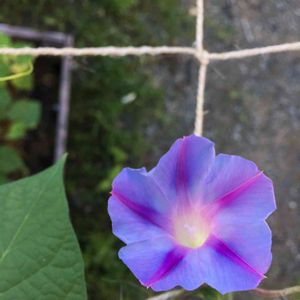 ツゲによじ登って咲いてるセイヨウアサガオ💜