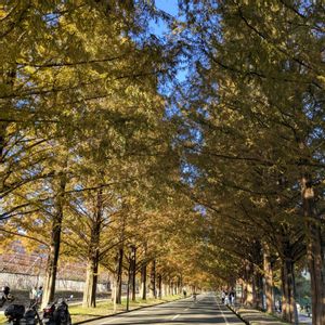 韓国にて、有名なメタセコイヤ 夏日の気温が続き、紅葉が待ち遠しい ??
