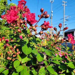 おはようございます☀️.° 7月25日(金)35℃予報 今日も朝から暑い 真っ青な空💙🌞ギラギラ 夏定番の🌳 サルスベリ(百日紅)の木🌳 ③④今年も近所のお庭であっちこっちで咲いて居て癒されます🤭°・*:.。.☆🌸 我が家🏡のサルスベリ 何度かお迎え冬越し出来なかったり…今年は冬越し成功✌️ ①②サルスベリの🪴 濃いピンク咲き始めつぼみ達がいっぱいこれから咲いてくれ 癒しパワー全開🥰 ⑤やたらアマガエル🐸🐸🐸 アサガオの大きな葉っぱに小さなアマガエルも涼を見つけたのね〰(〜 ̄▽ ̄)〰🐸 🏷キラキラ金曜日 良い週末をお過ごしください