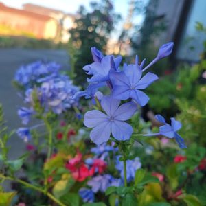 おはようございます·͜· ❤︎🌱✨ 🏷水曜日は水色 爽やかに咲くルリマツリ 今日も朝の癒しパワー🩵🍃 朝の癒しアサガオ今日朝は5輪も💜🤍🍃👀✨ ③房フジウツギが可愛い今年も咲き出しました💜🍃 ④スカエボラ(スターティア ブルー)星型のお花可愛い💜🍃 最近お迎えしました🤭 ⑤ムラサキルエリア一輪やっと咲き始め今年も咲いてくれてありがとう嬉しい〜💜🍃 今日も暑さ厳しい🥵 熱中症気をつけてお過ごしください🍀*゜