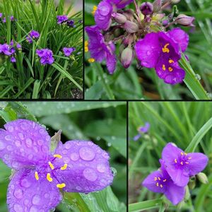 おはようございます☀️.° 7月21日(月)☀️.°35℃予報 今日も暑さ厳しい一日🥵 🏷今日のお花 💜🍃ムラサキツユグサ💜⋆͛ 今年は雨が少ない梅雨時期 今は暑さで枯れ枯れ 咲いていた頃のpicです 雨粒が似合いまーす☔🥰 🏷癒しの紫♡ ペチュニアいちまつ綺麗な模様 💜🤍🍃💜🤍🍃💜🤍🍃 赤紫のペチュニア ブッドレア次々ずっと咲いて くれている 満開〜房✨ 可愛い花姿💜🍃✌️ 今週も暑さに負けず 元気で過ごしましょう よろしくお願いします😊