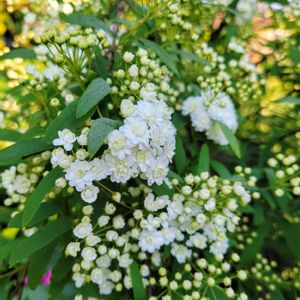 おはようございます😊 4月30日(水)☀18℃予報 朝ꕀ⋆朝日🌅キラッ✨✨✨ 🏷白い水曜日♡ 八重咲きコデマリ朝の様子🤍 少しずつ蕾達開花~🎶 朝日を浴びて鬱くしい🤩 ②クリンソウ🤍🍃 大きな🌿ꕀ⋆花芽が伸び開花 綺麗な花姿😍✨🤍 ③マラコイデス真っ白🤍🍃 もりもり元気朝の様子💪 ④斑入りアリッサム満開🤍 冬越し元気に咲いてくれてありがとう😊 ⑤種まきヤグルマギク🤍💜🍃 咲き始めました🤗 今日は白いお花 🏷白い貴婦人✨参加します⋆˚ 朝から陽射しキラキラ花たち (^▽^)厂厂元気パワー 元気な一日を✨ 素敵な水曜日を✨