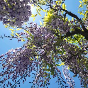 こんにちはꔛ•ᴗ•ꕤ* フジ花見て来ました💜🌿 陽射しきらきら〜🌞✨💜🌿 青空︎ ︎︎︎︎︎‐`💙フジのお花きれい🤩 💜**(⸝⸝⸝ˊᗜˋ⸝⸝⸝)💜** ツツジも咲きだしました🤗 真っ赤なツツジに🦋可愛い💕 🏷 木曜日は気に咲く花 🏷木漏れ日の木曜日 午後からも良い時間をお過ごし下さい✨