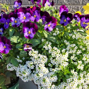 こんばんは😊 🏷日曜ビタミンカラー♪ 元気パワーお届け(💪・▷・) 水やり前に(*ˊᵕˋo📷oパチリ✦* ①黄色アリッサムもりもり💛 ②ペチュニア💛🍃 ③オステオスペルマムキララ🌼*・元気 ④モッコウバラ連投🙇♀️ 満開~キレイ✨🌼*・ ⑤ミネルバ🌼*・満開元気いっぱい🌼*🍃🌼*🍃・🌼*🍃・🌼*・