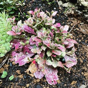 アジュガ💗バーガンディーグロー 春~秋は薄緑・白・ピンクの斑入りオシャレカラーですが、寒い時期は濃いピンクになります😆