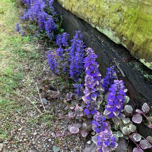 昨年秋、北側花壇にアジュガを植えました。 初めて育てるアジュガ。 冬は全く変化が無く、どう育つのか気になっていたら、まず花が咲いてくれました🤗 ここは夏はガンガン日のあたる場所。 水切れに気をつけなくちゃ🤗