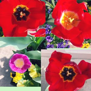 おはようございます😃 今日はフクロウ🦉祭りですね。 うちのチューリップ🌷パンジー、ヒューケラで参加させて頂きます。