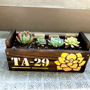 こんにちは 先週木工市でゲットした木目のプランターにおんぷ♪さんから頂いた多肉ちゃん達を植え替えしました。