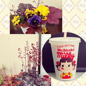 おはようございます😃 ペコちゃん祭り🏷に参加します😊 期間限定のMacシェイクペコちゃんです。 ヒューケラが今モリモリですよ。