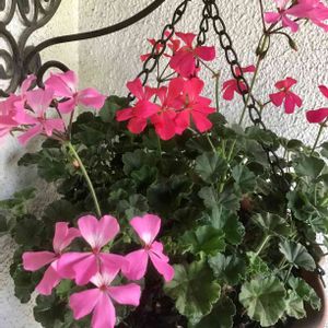ずっと 咲いてる 一重の ゼラニウ ム カリエンテ 🌸🌺 今朝は 吊り鉢風にして 撮ってみました ❣️