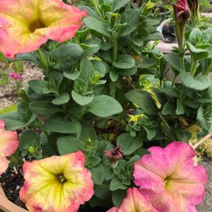 優しいピンクにグリーンがかかって 寄せ植えに馴染むペチュニアさんです✨ あまりお迎えしないタイプですが 咲いてみたらとてもいいですね💕