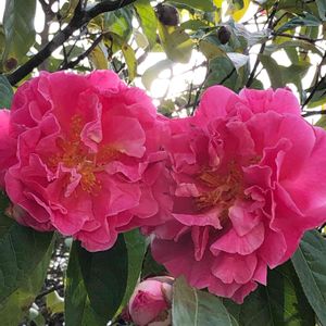 薔薇のような、、、牡丹のような、、、 コレ ツバキ です! 初めて見るとても豪華なツバキ です!👀 なんでも植木職人だったお爺様が接木してやっと成功した木なのだそう😆 大輪で見事な花です✨✨✨ 名前はわかりません😅