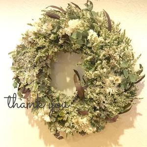 白を基調とした大人可愛いリース ちよみんさんが 私をイメージして作ってくれました (●︎´艸`)ムフフ 色んな花材を沢山使って ボリューミーで良い香りです✨ ちよみんさんのリース大好き 今年もありがとうございました(˘³˘)♥ 連投しました🙏