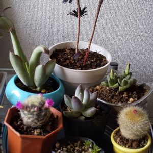だいぶ暖かくなってベランダ日和の1日でした。 明日も少し気温が下がるので、最近は少しづつ外に出したり慣らしたりして、ステイホームしてます。 成長の遅いサボテンの小苗を少し迎えました。