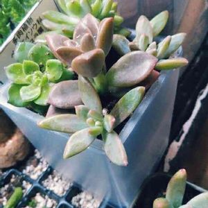 時期的にはダメなのかな?と思いつつ、先週植え替えたキタキツネさんが元気なので思い切って小さいプラ鉢さんたちを植え替えました 思いっきり土かぶってしまってる😱 それとポロリした葉とか小さい苗は一旦同じ鉢に集めてみました どうせ放置してたら枯れるだけ ダメ元でチャレンジ
