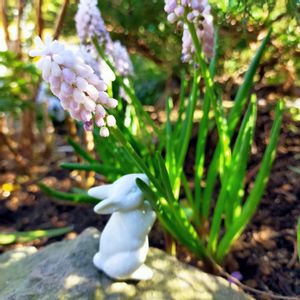 食と緑の空中庭園 白いムスカリが可愛かったです。🌼うさ太は倒れそうなムスカリをよいしょよいしょと支えています🐇