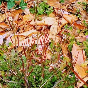 今朝の散歩道です。 通り道のお宅の、空き地に、小さなお花 ミチタネツケバナが、咲いていました。