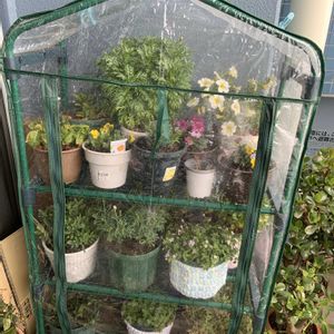 大寒波が来るらしい 我が家の冬越し 簡易ビニールハウスと百均パーツで作ったラックにビニール袋貼り合わせてハウス作った 3枚目はスーパートレニアカタリーナさんを一応カバー作ってプチプチ貼って冬越しチャレンジしているけど、どうだろうね
