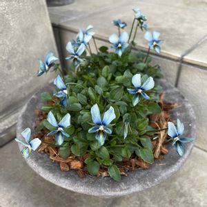 長らく待機させていた パピヨンワールドを植え付けました。 ブルー系の寄せ植えは イメージがしづらく苦手。 ついつい後回しになってしまいます。 花弁の縁から色変わりし始めてます。 この後パープルになっていくのでしょうか❓ 変化を見守っていきたいと思います。