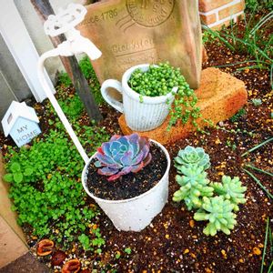 おはようございます☀️ 植え替えしてみました。お揃いの鉢左グリーンネックレス、右ピーチネックレス、下サハラお花がにょきにょきなのでティーカップ風の鉢に長~い支柱立ててみました🌸 超~伸びるらしいです❗ティーカップ風の鉢は、何十年か前ケンメリが発売になった時のイベントの記念品らしいです。スカイラインジャパンって書いてある…車の発売記念に鉢って😱おじいちゃん、私が大事に使わせ頂きます✨😌✨ サハラ用にすのこの棚作ったけど、色塗りたくなっちゃいました~😊みなさま、GW楽しんでくださいね✨