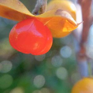 秋色見つけた~👀💕 川沿いの道にたくさん実をつけたツルウメモドキ ひとつ殻が弾けて艶々の姿を風に震わせていました。🤗 やはりべっぴんさんですね。🤗