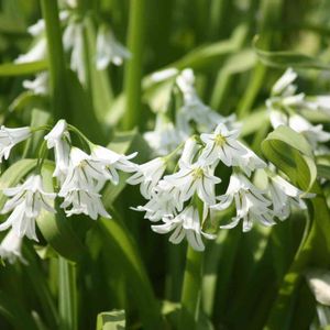 手前に咲くのはリキュウバイ💠 池の向こう岸には、スノーフレークが縁取りのように咲いていて、緑と白の美しい風景を作ってくれています💚🤍