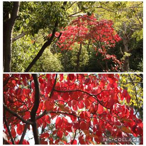 公園内の道を歩いて行くと、今度はひときわ赤く染まったハナミズキの木が現れます🍂❤️