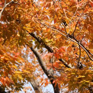 アキニレの木はオレンジ色に🧡 アキニレの葉は小さくて、車の上に落ちてくるととても厄介🍂 フロントガラスとボンネットの間に入り込んで、なかなか取れません😩💦