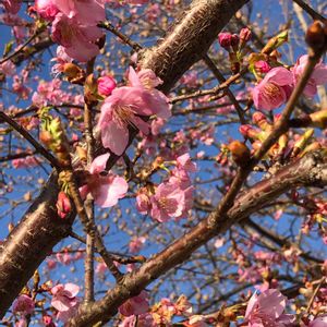 🌸河津桜🌸 風が強かったけれどお散歩行ってきました。 防災公園で1番早く咲く河津桜です🌸
